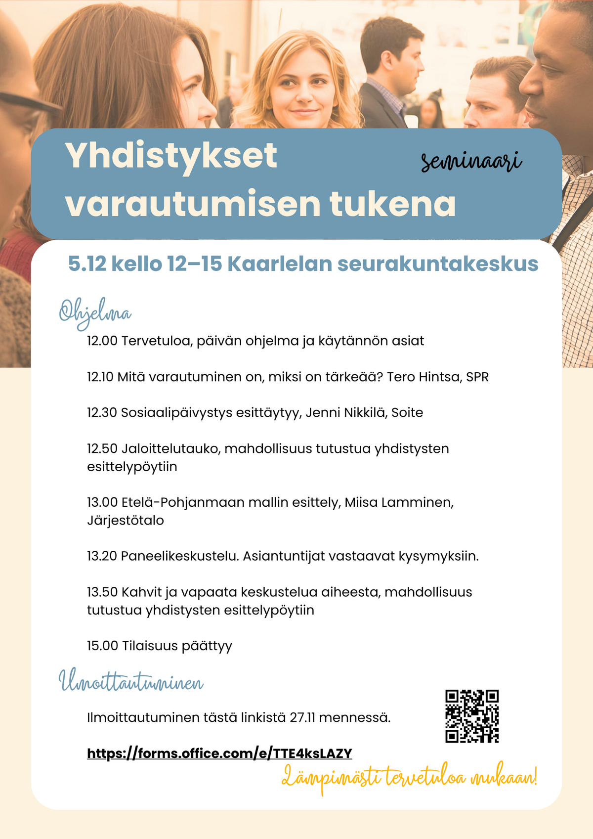 Ilmoittautuminen tästä linkistä 27.11 mennessä.